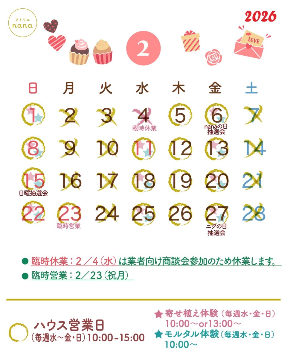2月も水〜金、日曜10時〜15時で営業しておりますが、臨時休業日と臨時営業日がございます🙏